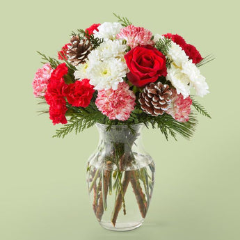 Experience the sweet spirit of the holidays with our exclusive Candy Cane Lane® Bouquet. This festive arrangement features vibrant red and white blooms, reminiscent of classic candy canes. Perfect for holiday gifting or decorating, this bouquet brings a playful touch to your celebrations.